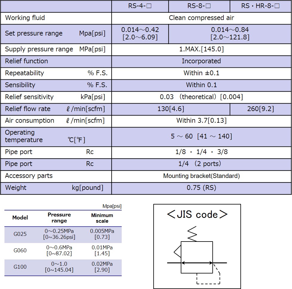 - Very superior in relief, pressure, flow sensitivities. Particularly, minimum relief pressure (relief sensitivity) as low as 0.03kPa,0.004psi(theoretical value) finds best applications in tension control and air-balancer, etc.