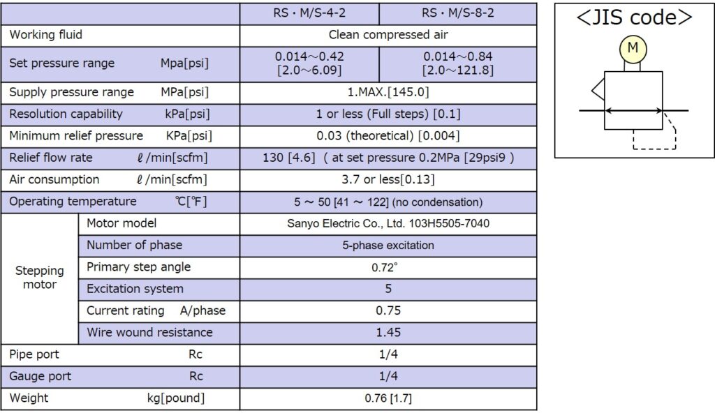 Five-phase stepping motor drive enables users slightly change the setup pressure by 1 step driving. Further, micro-step driving achieves high pressure resolution by 0.1kPa,0.01psi or less. - Maintaining the pressure during electricity outage.
