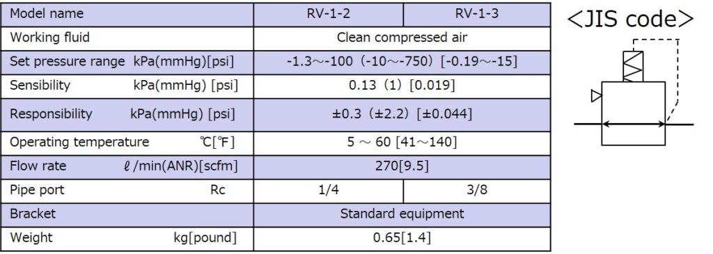 ’RV.S series'' has high accuracy of pressure as vacuum regulator. Direct acting type allows little air leakage, and an efficient controlling of pressure from primary side.