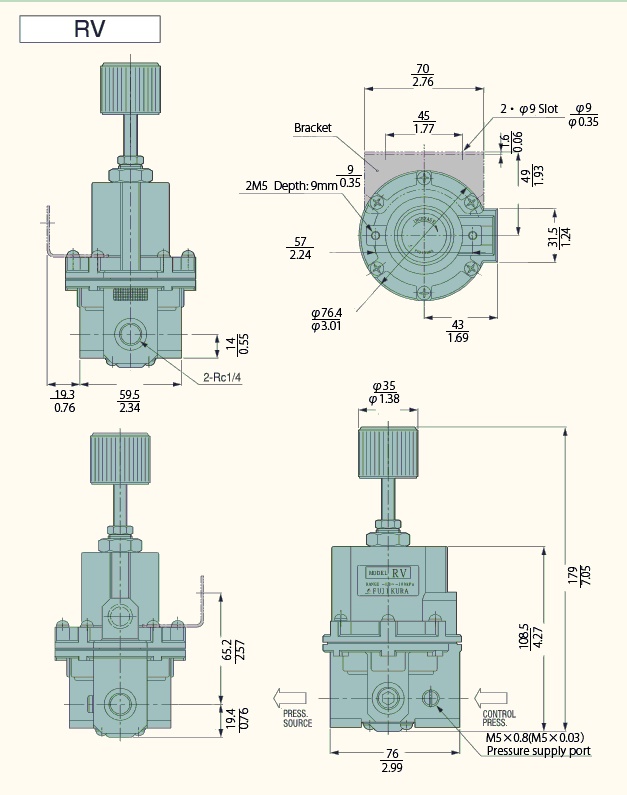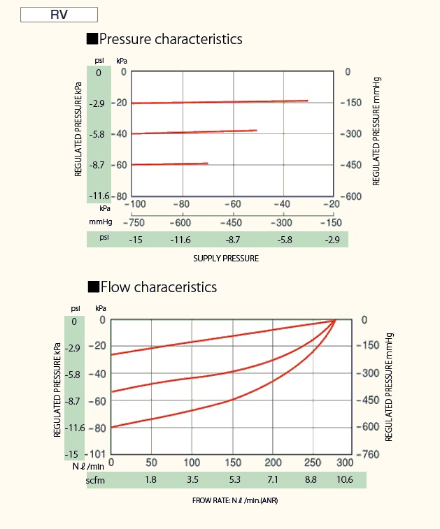 'RV2 series'' is the most compact type in vacuum regulator.It has almost same characteristic as ''RV series'' in the area with low pressure and small flow rate.
