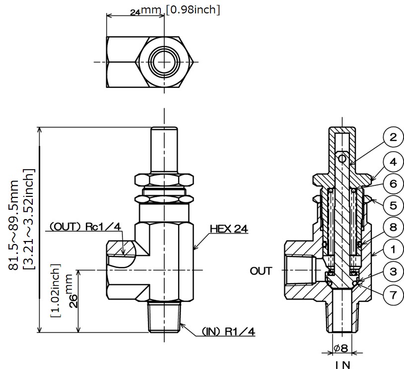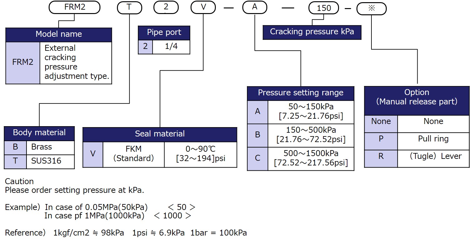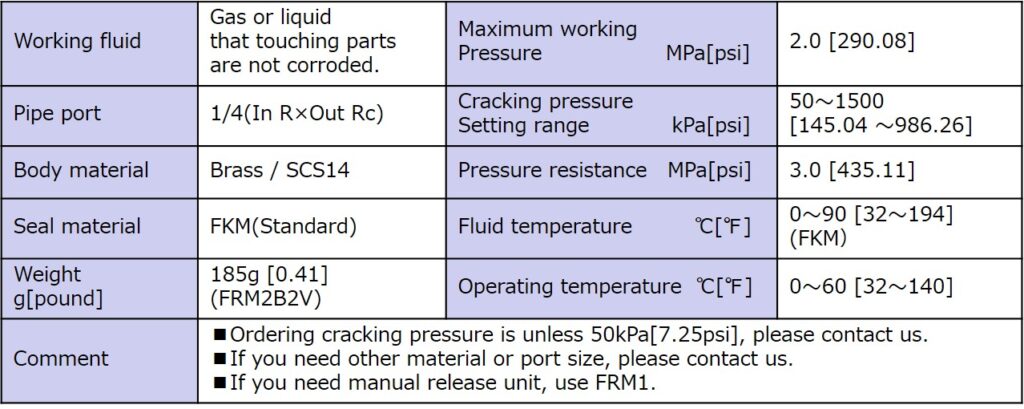 - Setting of cracking pressure is controllable. (Pressure setting is done before shipping)