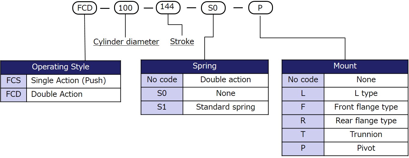 - FC Series are standard type of BF Cylinders. They are designated in a variety of sizes from 10 to 200φ(0.39~7.87in.).