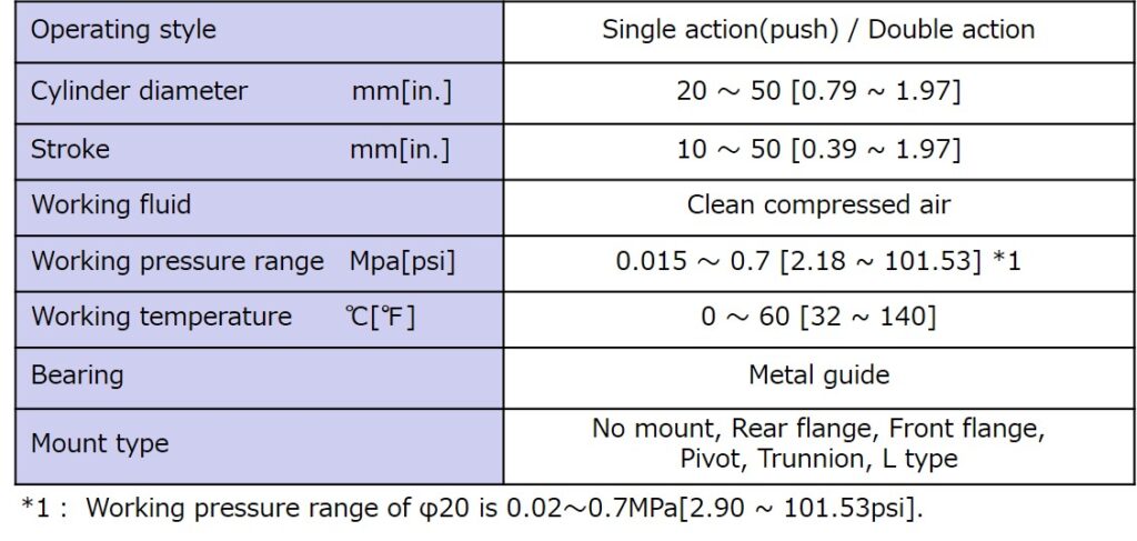 - It is compliant with specifications of cylinder installing size 1PS of JIS B 8368.