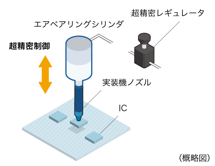 幅広い業界で使用されているエアシリンダですが、近年では半導体製造プロセスの高度化が進むなか、ナノレベルの位置精度が要求されており、エアシリンダのなかでもさらに精度の高い「エアベアリングシリンダ(ACシリーズ)」のニーズが急増しています。