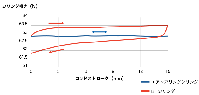 (当社BFシリンダとの比較 – 推圧力0.2MPa、ベアリング圧0.5MPa印加時)