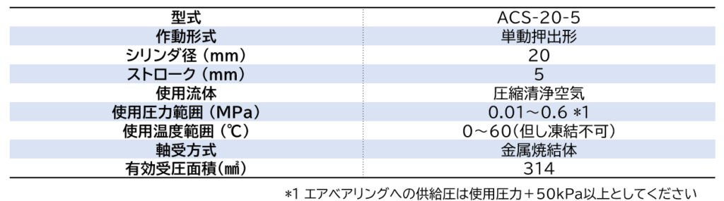 【バックナンバー】薄型エアベアリングシリンダ「ACS-20-5」のご紹介