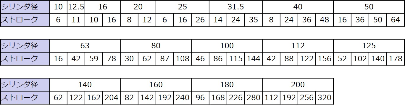 - 各種サイズとも、単動押出形と複動形(但し、φ25mm以上)があります。