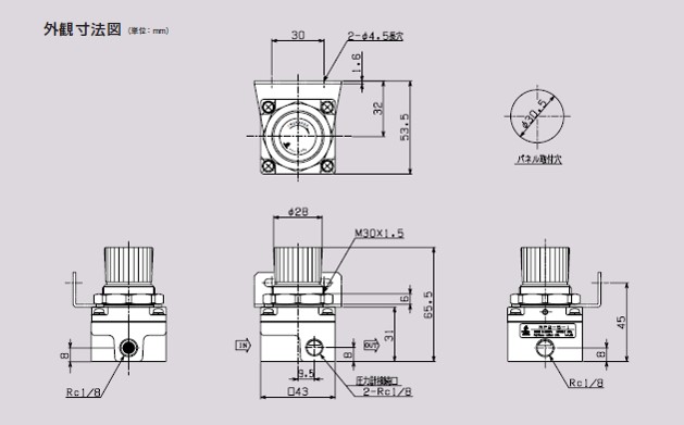 圧力特性はプッシュロック式ノブの為、手軽に設定圧力の固定が可能です。 - 様々な取付けにも対応可能