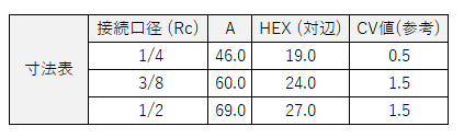 | 接続口径 | Rc1/4~Rc1/2 | |