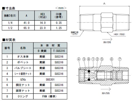 | 本体材質 | 黄銅 / SUS316 | |||