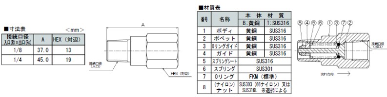 | 接続口径 | 1/8、1/4(入口R×出口Rc) |
