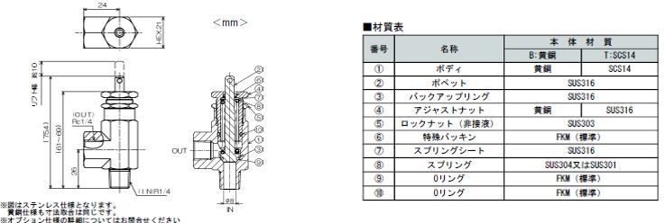 | 備考 | ○手動開放機構(プルリングorトグルレバー)はオプション対応となります。 ○その他材質をご希望の場合はお問い合わせください。 ○その他流体の場合はFRM2シリーズをご選定ください。 |