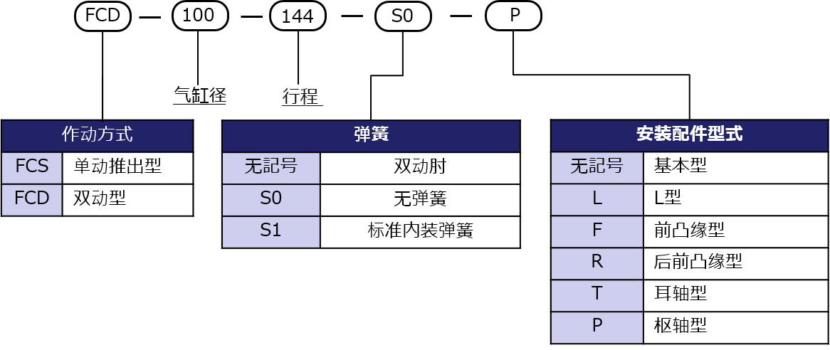 - BF气缸的标准型号,气缸的缸径φ10~200mm各种对应。
