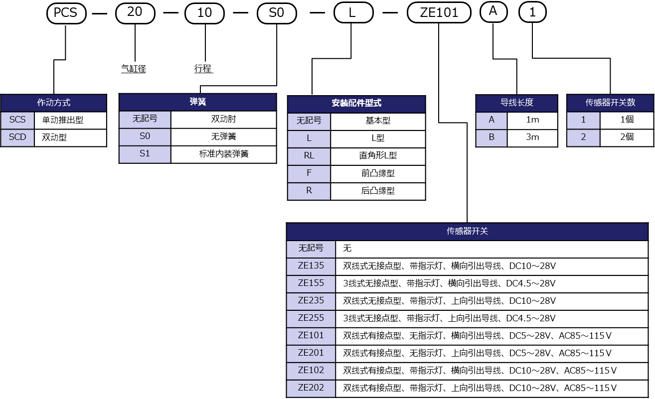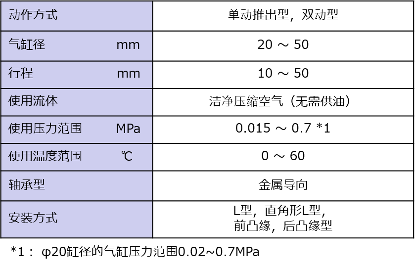 - 符合JIS B 8368安装尺寸1PS气缸的规格标准。